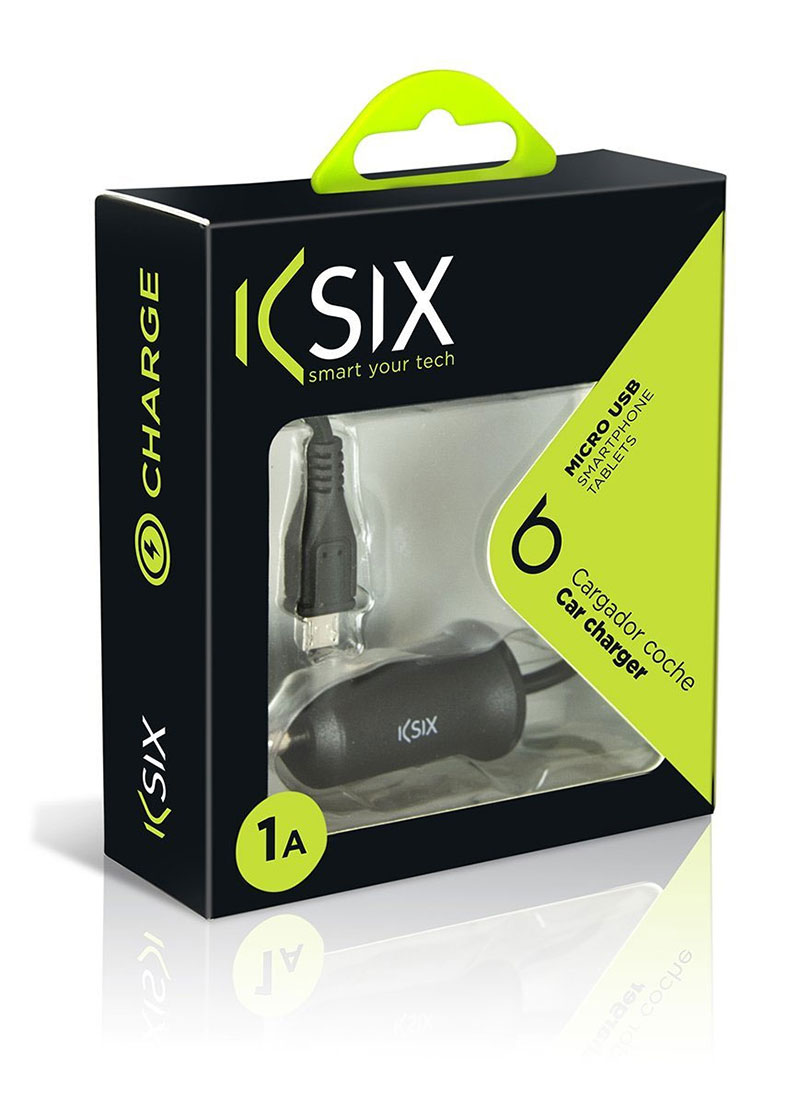 Contenido de la caja: 1 x Cargador de coche Ksix Micro USB 1A.